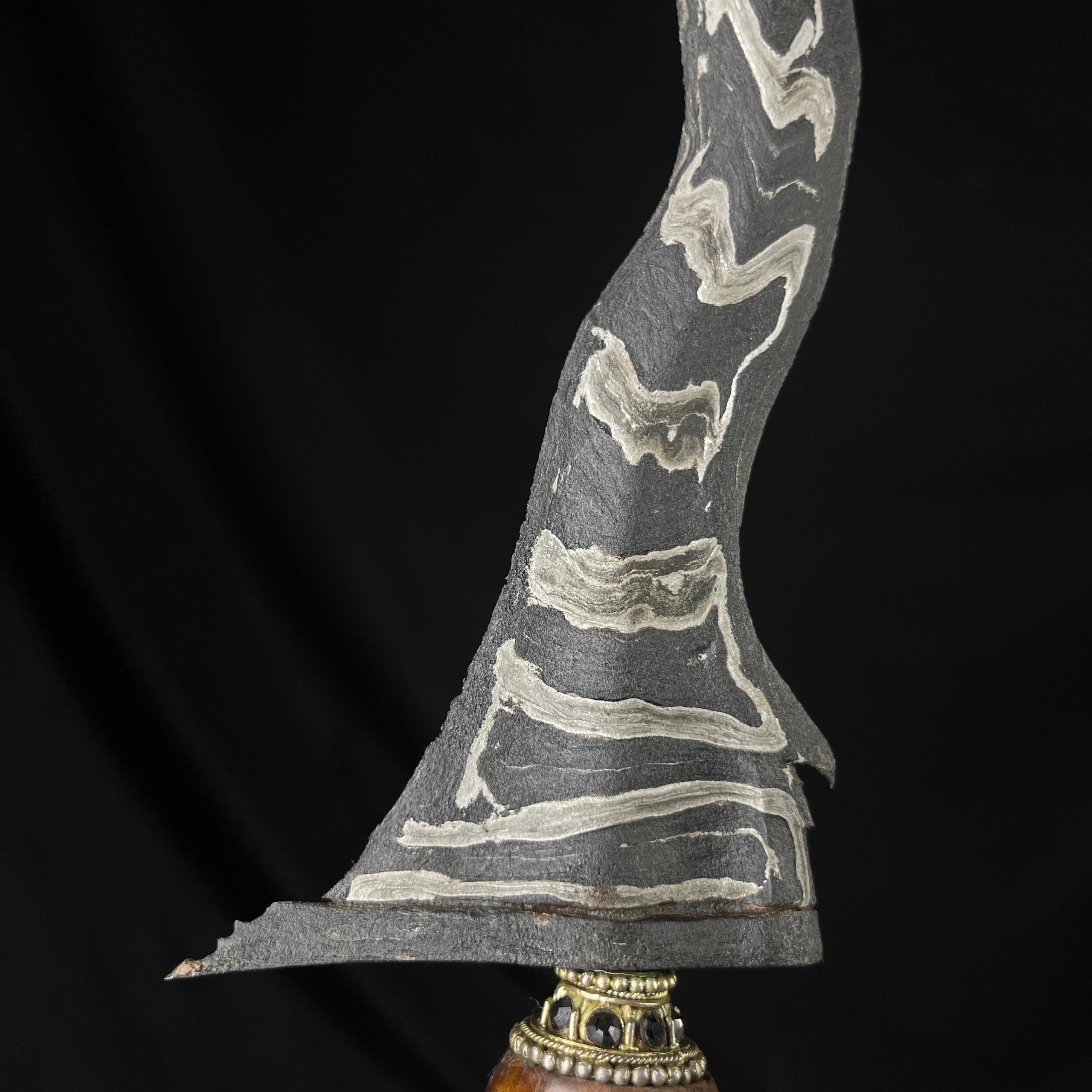 Pusaka ini cukup langka dengan pamornya toya mambeg. Yaitu salah satu jenis pamor miring yang begitu indah corak dan motifnya. Ia tergurat indah dengan warna yang kontras pada sekujur bilah pusaka ini.