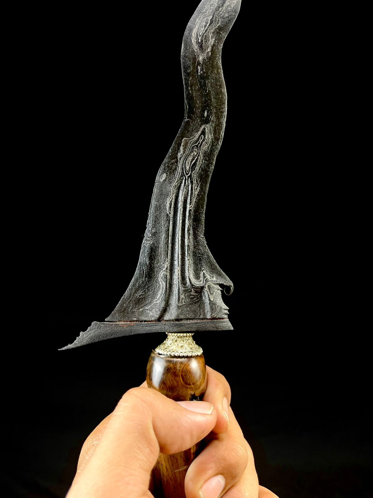 Keris Carita Keprabon bertangguh Mataram menghadirkan perpaduan antara falsafah hidup manusia Jawa dan laku kepemimpinan adiluhung yang diwariskan para leluhur. Dalam dhapur ini terkandung gagasan bahwa manusia adalah pelakon utama dalam carita—alur kehidupan—yang ditentukan oleh pilihan, perbuatan, dan laku batinnya sendiri. Sebutan Keprabon tidak hanya menunjuk pada kedudukan seorang raja, tetapi sebuah gambaran kepemimpinan sejati: memimpin dengan budi, bukan menaklukkan dengan kuasa. Maka tidak mengherankan jika pada masa lampau keris luk sebelas berdhapur Carita Keprabon hanya dimiliki para bangsawan dan priyayi, sebagai simbol martabat, laku pengayoman, serta kesanggupan memikul tanggung jawab besar.