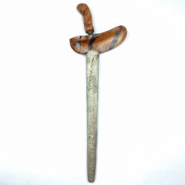 TERMAHARPedang Sabet Brojoguno Dwi Pamor Dhapur/ Nama bentuk Pedang : Sabet Pamor / Motif Lipatan Besi : Dwi Warna (Pedaringan Kebak Dan Puser Bumi) Tangguh : PB Sepuh Empu Brojoguno Panjang bilah tajam : 42,9 cm Warangka : Tanduk Kerbau Kuno Original Bawaan Bilah Handel / Gagang Pedang : Kayu Galeh jati Kode : PK530