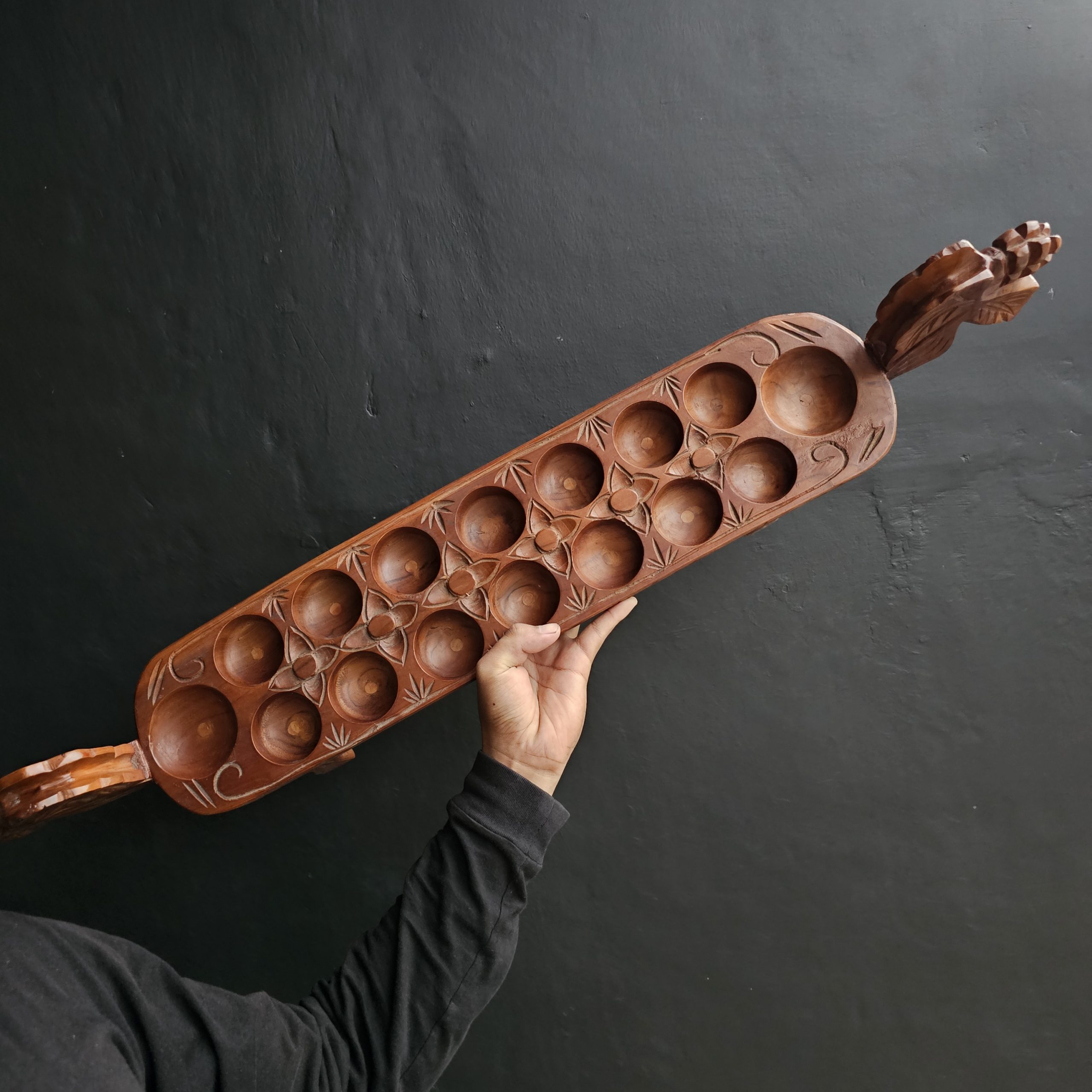 - Desain yang Cantik : Papan permainan Dakon Congklak yang terbuat dari kayu jati sering kali dihiasi dengan ukiran tangan yang memikat.