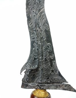 Pusaka Keris Tilam Sari Pamor Miring Kenongo Ginubah Kuno Langka Dhapur Keris (jenis bentuk keris) : Tilam Sari Pamor (motif lipatan besi) : Kenanga Ginubah Tangguh (perkiraan masa pembuatan) : Tuban Era Mataram Abad ke 17 Masehi Panjang Bilah : 34,6 cm Warangka : Gayaman Surakarta Gandar Iras Kayu Trembalo Kuno Handle / Gagang :… selengkapnya