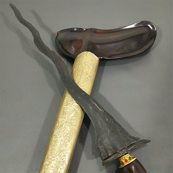 Hubungi AdminKeris Sengkelat Pusaka Warisan Kerajaan Blambangan Keris Sengkelat Pusaka Warisan Kerajaan Blambangan – Inilah salah satu koleksi pusaka kami yang tergolong langka, baik dari segi era maupun tangguhnya. Keris Sengkelat dengan pamor mlumah dan tangguh Blambangan seperti ini jarang dijumpai, mengingat Blambangan merupakan kerajaan yang berada di perbatasan budaya Jawa dan Bali, yang memiliki tradisi… selengkapnya