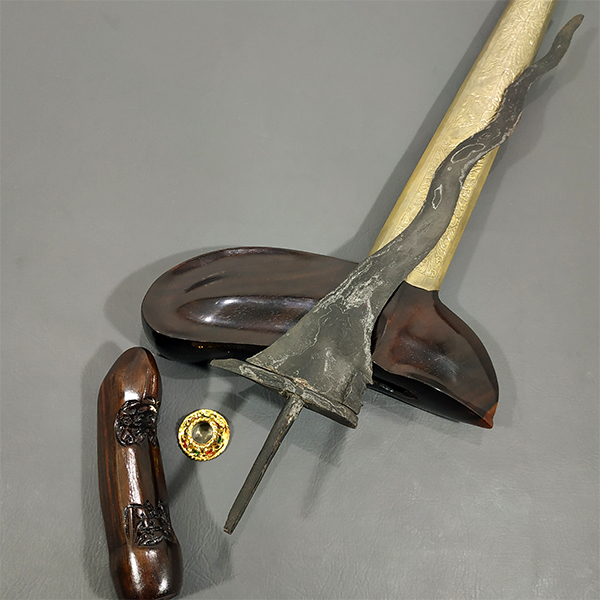 Rp 13.000.000Keris Sengkelat Pamor Pandita Bala Pandita Nyekrak Tangguh Blambangan Dhapur Keris (jenis bentuk keris) : Sengkelat Luk 13 Pamor (motif lipatan besi) : Pandita Bala Pandita (Pamor Nyekrak Khas Tangguh Blambangan) Tangguh (perkiraan masa pembuatan) : Blambangan Panjang Bilah : 33,8 cm Warangka : Gayaman Jogjakarta Kayu Trembalo Kuno Handle / Gagang : Kayu Kemuning… selengkapnya