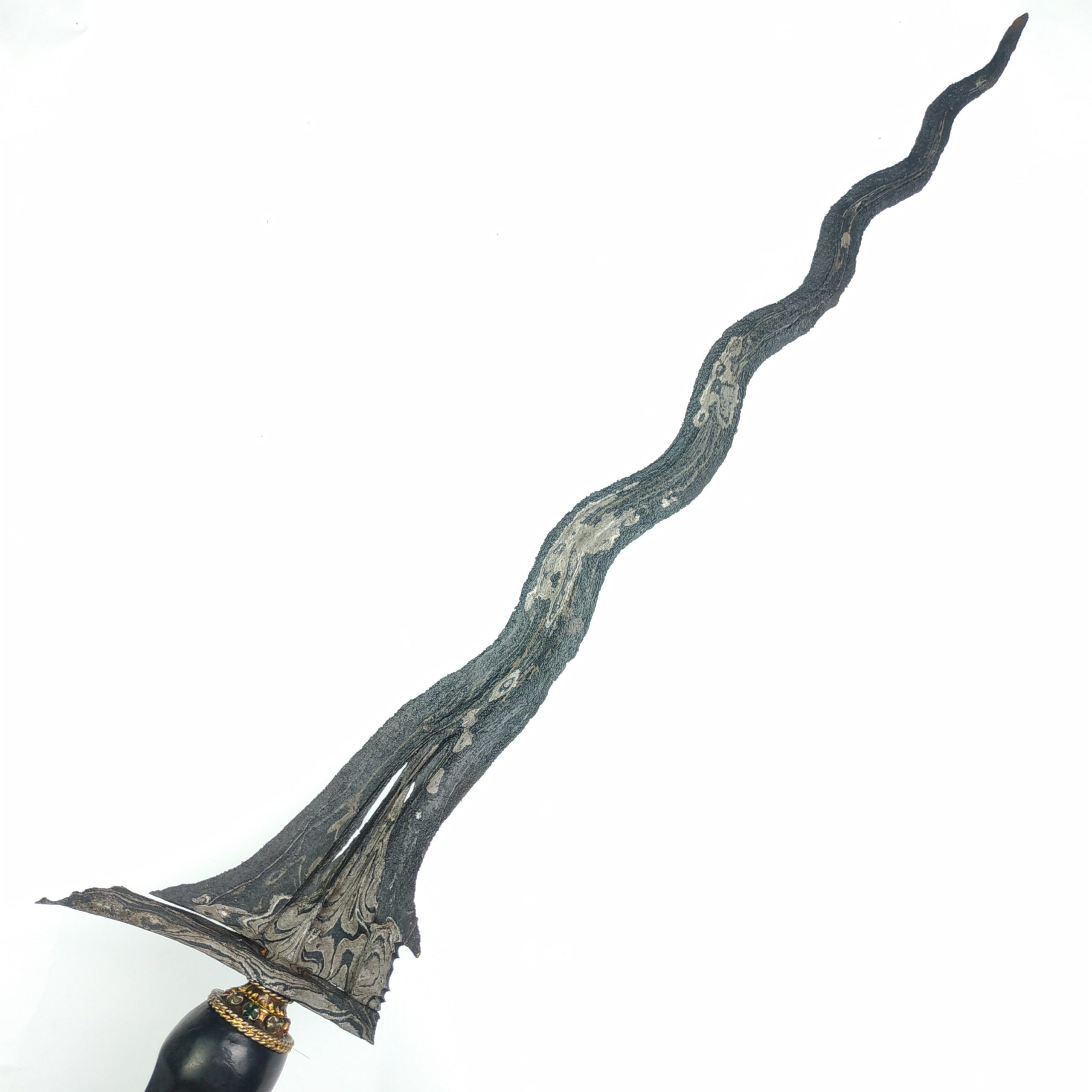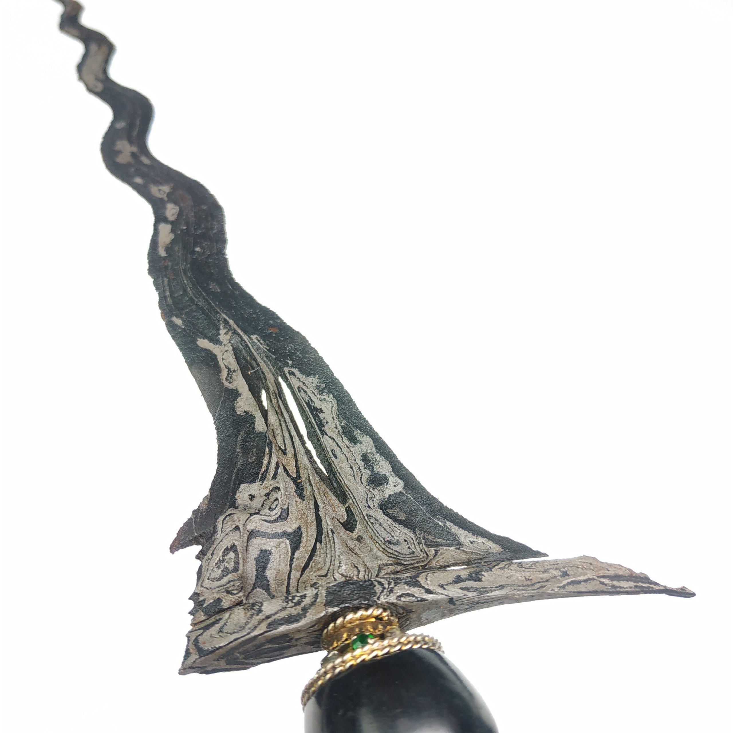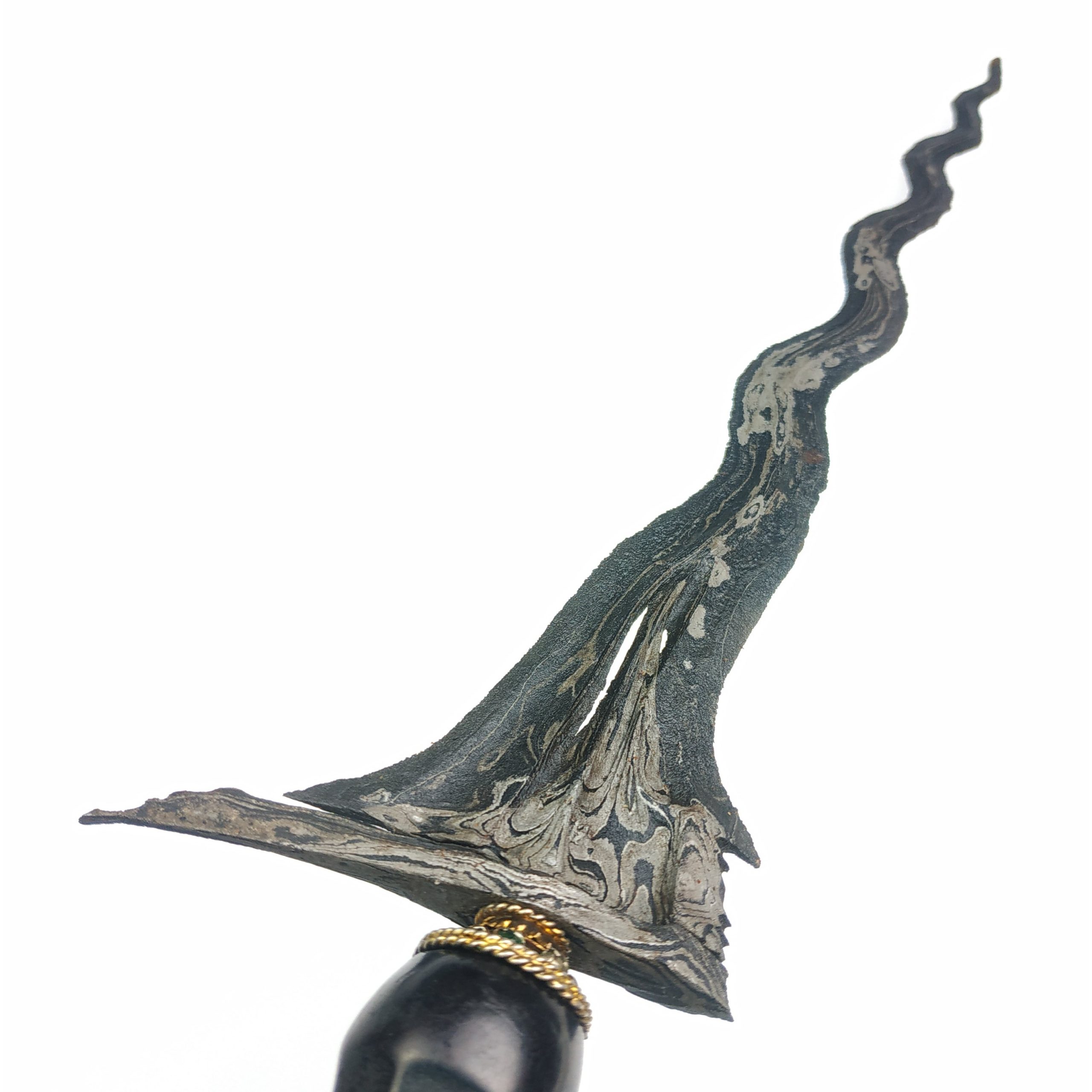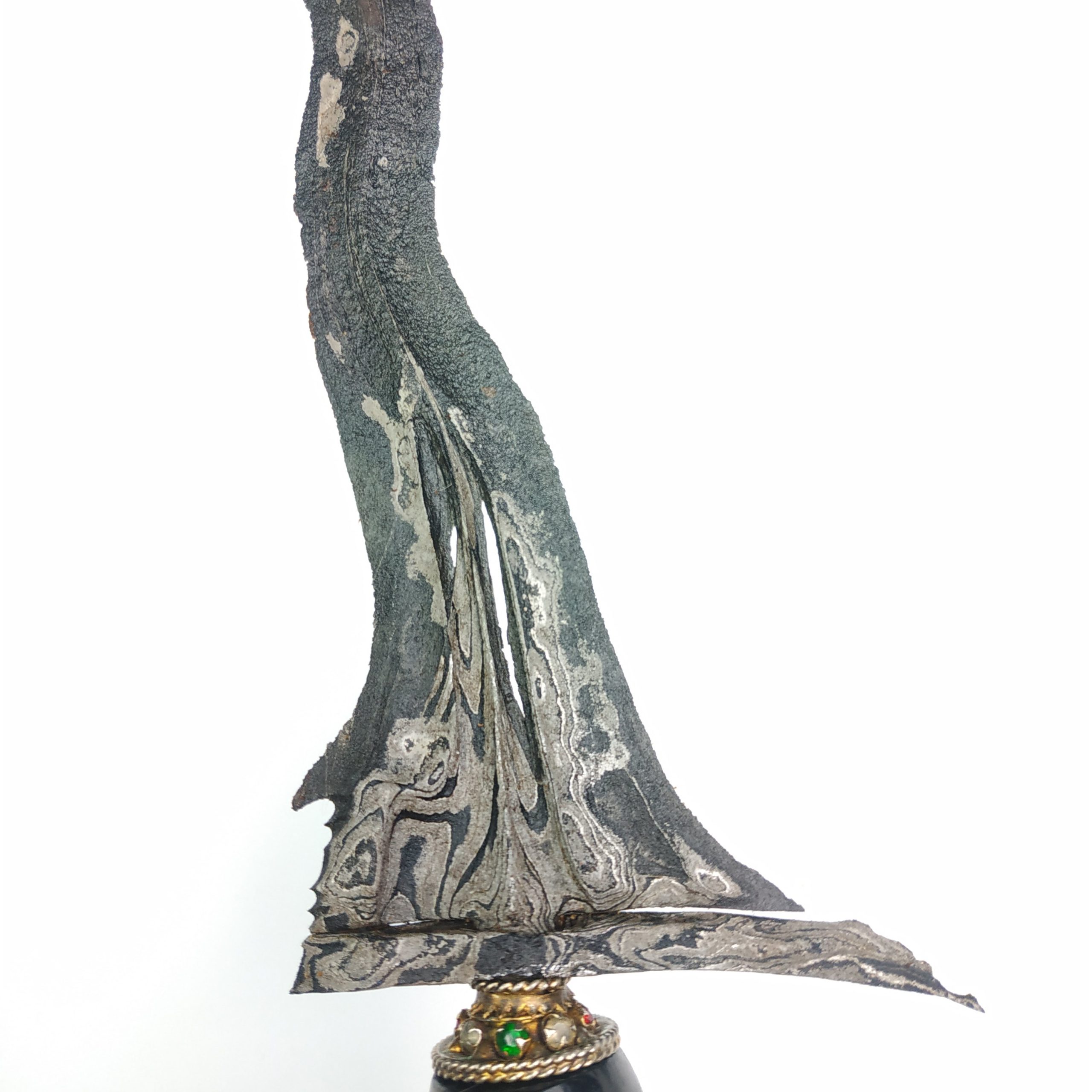 Hubungi AdminKeris Dhapur Mesem Pamor Ron Genduru Sungsang Keris Dhapur Mesem Pamor Ron Genduru Sungsang merupakan keris yang sangat langka. Dari mulai dhapur hingga pamornya merupakan keris yang sudah jarang dijumpai sekaligus banyak diburu para kolektor. Apalagi untuk keris dengan bilah yang masih sangat utuh dan pamor tanpa putus, kontras dan pandes seperti ini. Ini merupakan… selengkapnya