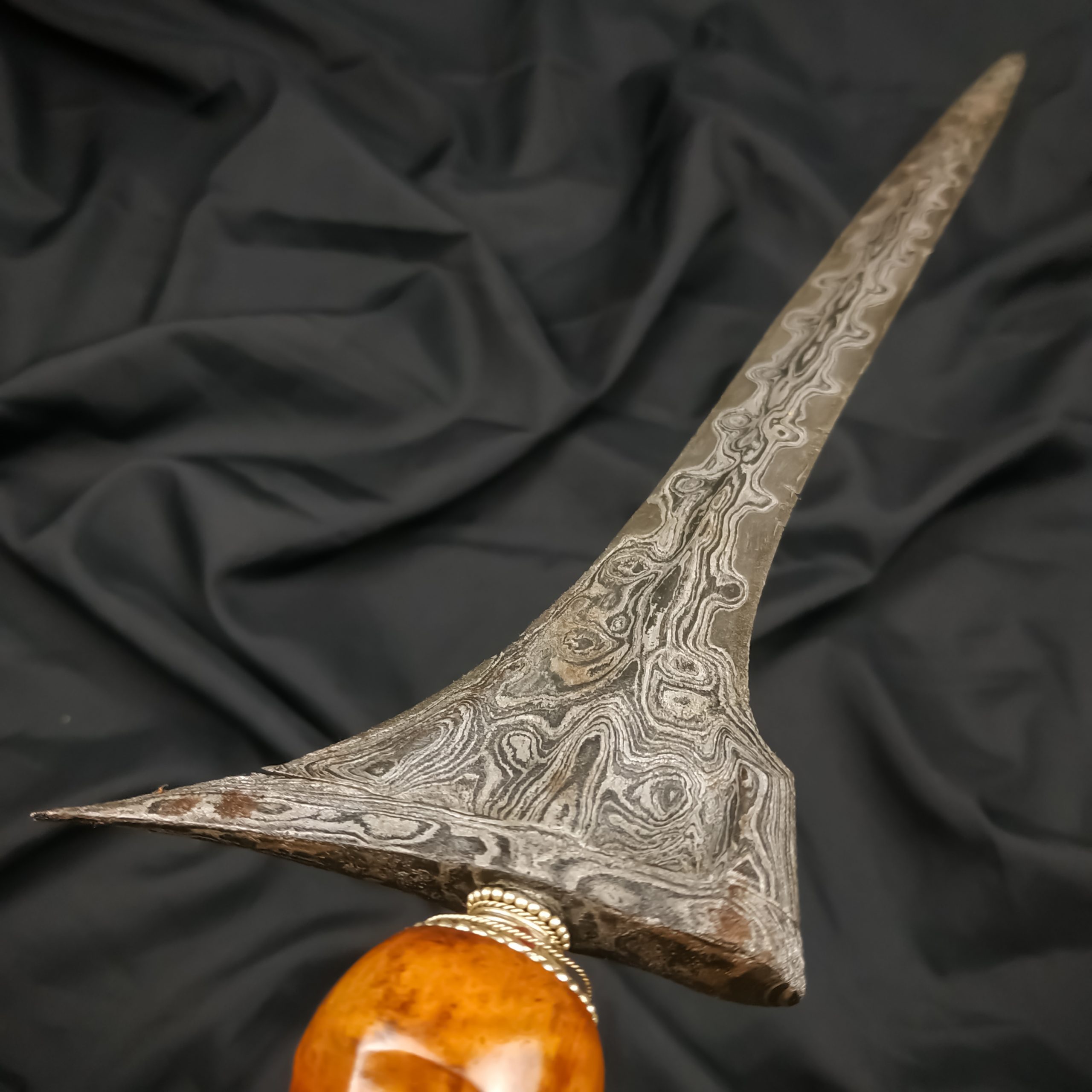 Rp 3.755.000Jalak Sangu Tumpeng Pamor Kulit Semangka Dalam tradisi perkerisan Jawa, terdapat empat dhapur yang sejak lama dipercaya sebagai pusaka wajib bagi seorang lelaki: Brojol, Tilam Upih, Tilam Sari, dan Jalak Sangu Tumpeng. Keempatnya bukan sekadar bentuk bilah, melainkan penanda laku hidup—dari kelahiran, penataan rumah tangga, hingga kesiapan menjalani tanggung jawab duniawi dan batiniah. Di antara… selengkapnya