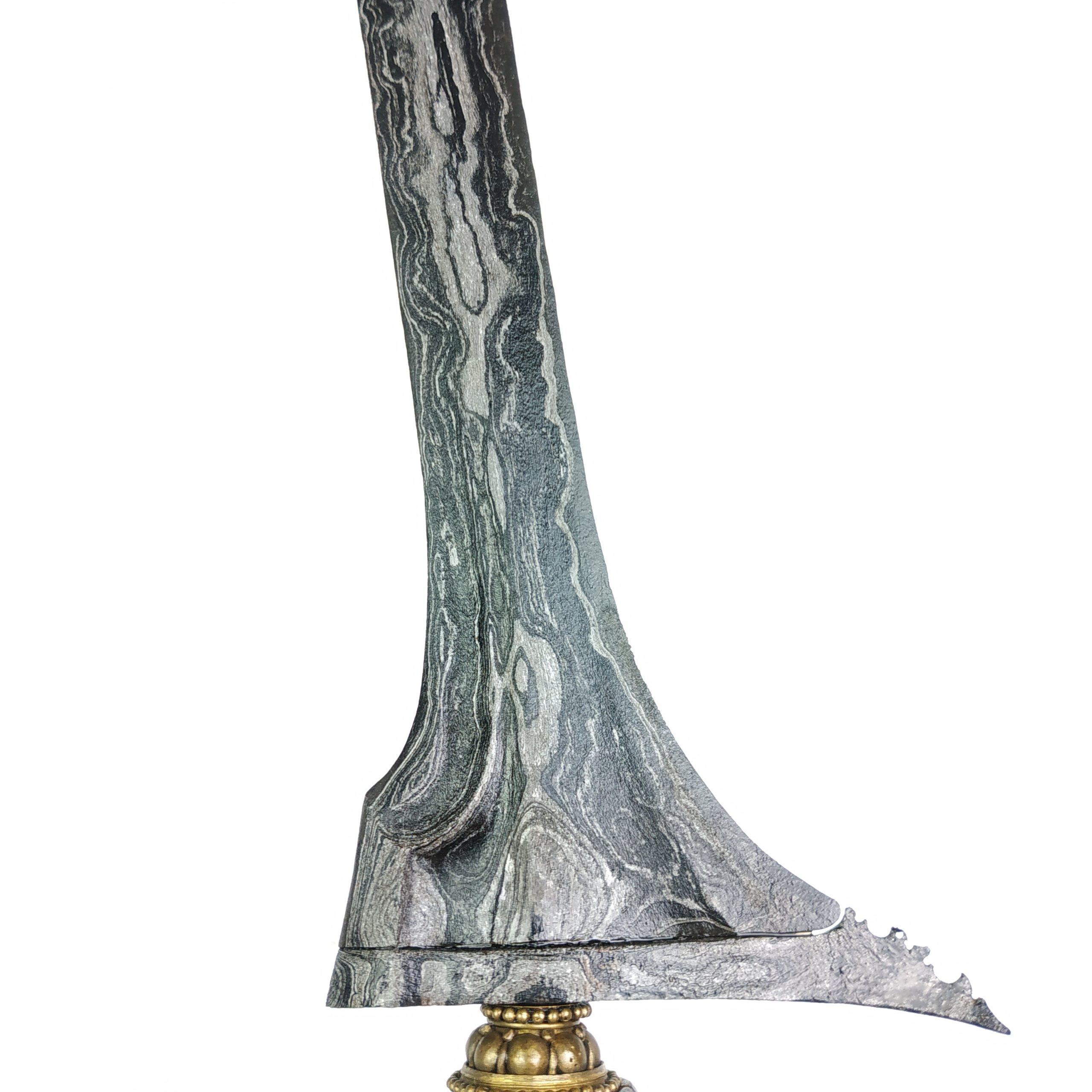 Tilam Upih Pamor Tetesing Warih Dhapur: Tilam Upih Pamor: Tetesing Warih Tangguh: Pajajaran Warangka: Gayaman Surakarta Kayu Trembalo Hulu/Handle: Yudawinatan Kayu Timoho Pendok: Blewah Kuningan Mamas Mendak: Bejen Kuningan