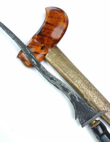 Rp 2.211.000LANGKA!! Keris Kalawijan Luk 27 Kyai Rangga Wirun Sepuh Kuno Dhapur Keris (jenis bentuk keris) : Kyai Rangga Wirun – Kalawijan Luk 27 (Dhapur Sangat Langka & Otentik Original Asli Sepuh) Pamor (motif lipatan besi) : Ngulit Semangka Tangguh (perkiraan masa pembuatan) : Mataram Sepuh (Abad XVI) Panjang Bilah : 34 cm (pesi utuh masih… selengkapnya