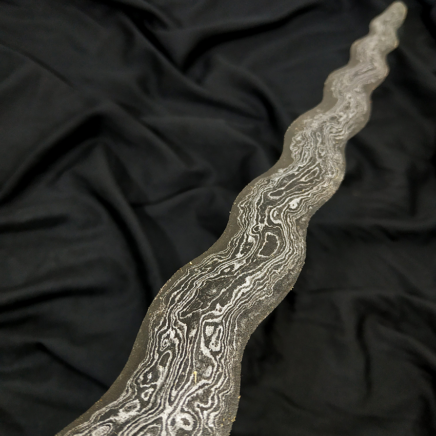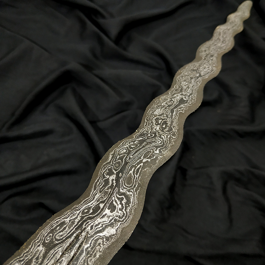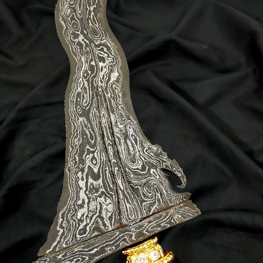 - Pamor (motif lipatan besi) : Wos Wutah / Beras Wutah kebak