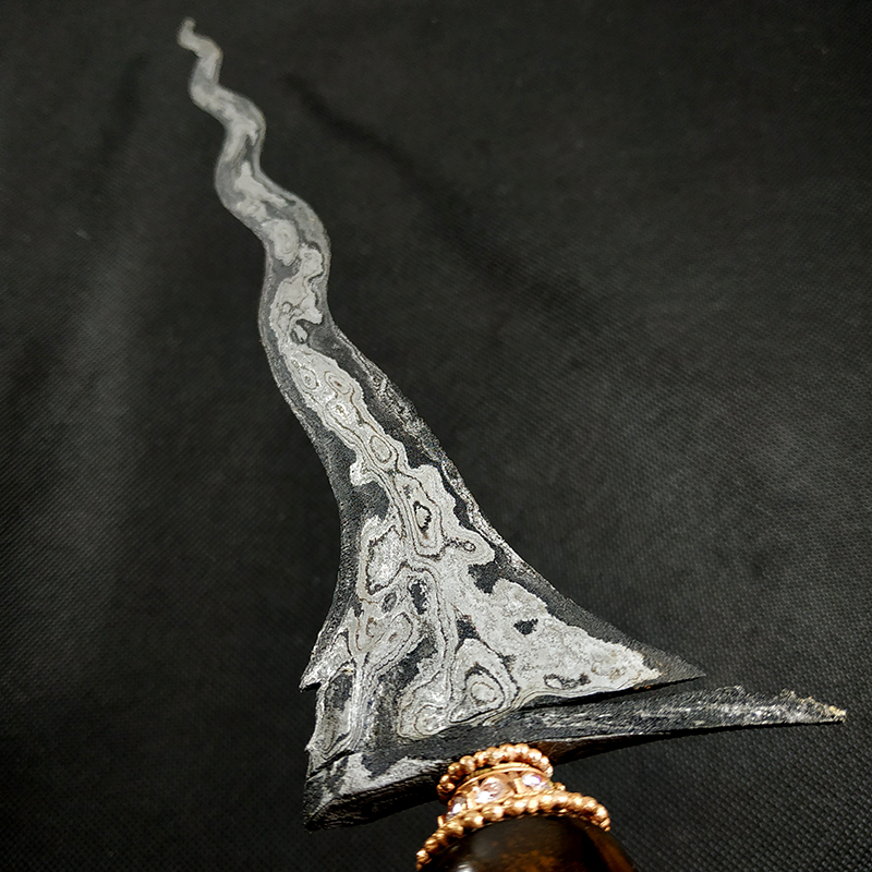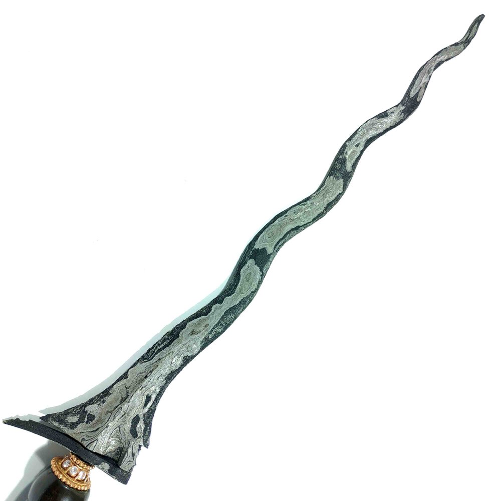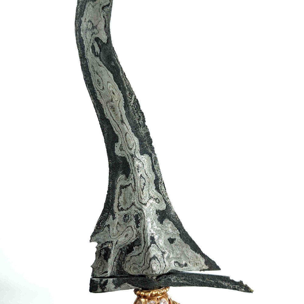 Keris asli dari era kerajaan Mataram Senopati yang masih utuh dengan pamor cerah khas material bahan meteor.