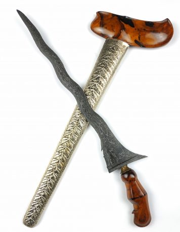 Rp 4.150.000Keris Jalak Ngore PB VI Keris Jalak Ngore PB VI merupakan salah satu dari ratusan koleksi pusaka keris kami. Keris ini termasuk dalam golongan jenis keris lurus. Jika dilihat dari bentuk dan ricikannya, keris ini berdhapur Jalak Ngore. Untuk pamor yang tergurat di bilahnya adalah pamor Segoro Muncar. Warangka memakai model Gayaman dari bahan kayu Timoho kuno asli bawaan bilah…. selengkapnya