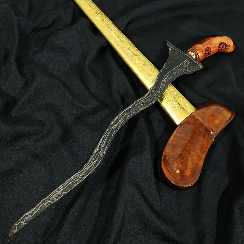 Keris Kolonadah Luk 5 Pamor Banyu Mili Sepuh Kuno Tua
