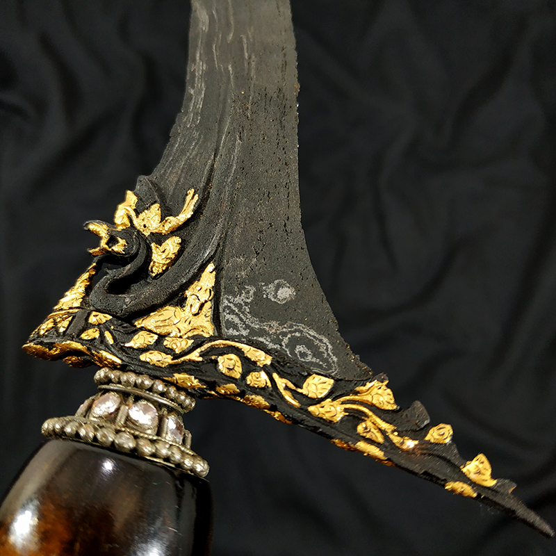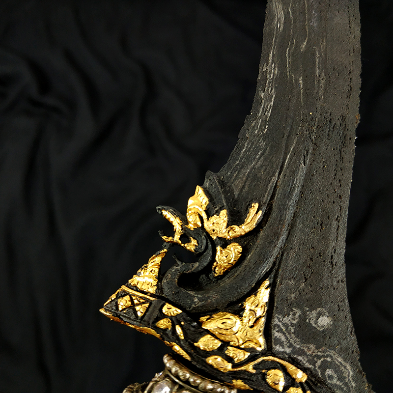 Dialih rawatkan (dimaharkan) Keris Nogo Siluman Kinatah Emas Pamor Banyu Tetes Mataram Senopaten sesuai dengan foto dan deskripsi yang tertera. Berikut detail foto Keris Nogo Siluman Kinatah Emas Pamor Banyu Tetes Mataram Senopaten, kami ambil dari berbagai sudut dengan background putih dan hitam untuk lebih memperjelas pengamatan.