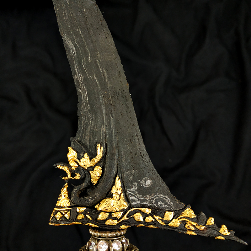 - Pamor (motif lipatan besi) : Banyu Tetes Ceprit-Ceprit (kinatah emas 5 wedono)