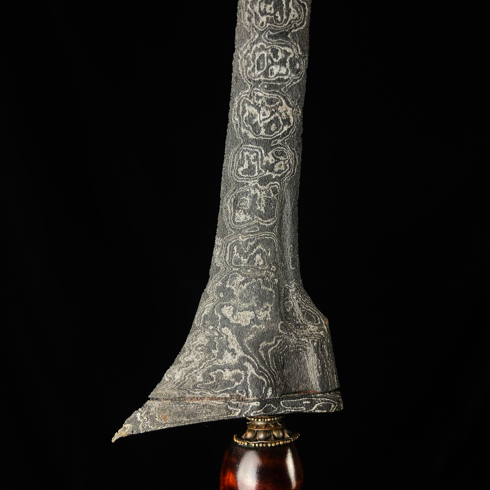 Keris Pamor Rojo Gundolo Kuno Keris Pamor Rojo Gundolo Kuno yang satu ini tentu saja sangat spesial. Sebuah pamor tiban yang eksotis nampak pada bagian sor-soran keris ini. Berbentuk sebuah gambar pola sesosok makhluk misterius yang pada umumnya pamor seperti ini disebut dengan sebutan pamor Rojo Gundolo. Jika dihayati dan diamati pola pamor Rojo Gundolo… selengkapnya