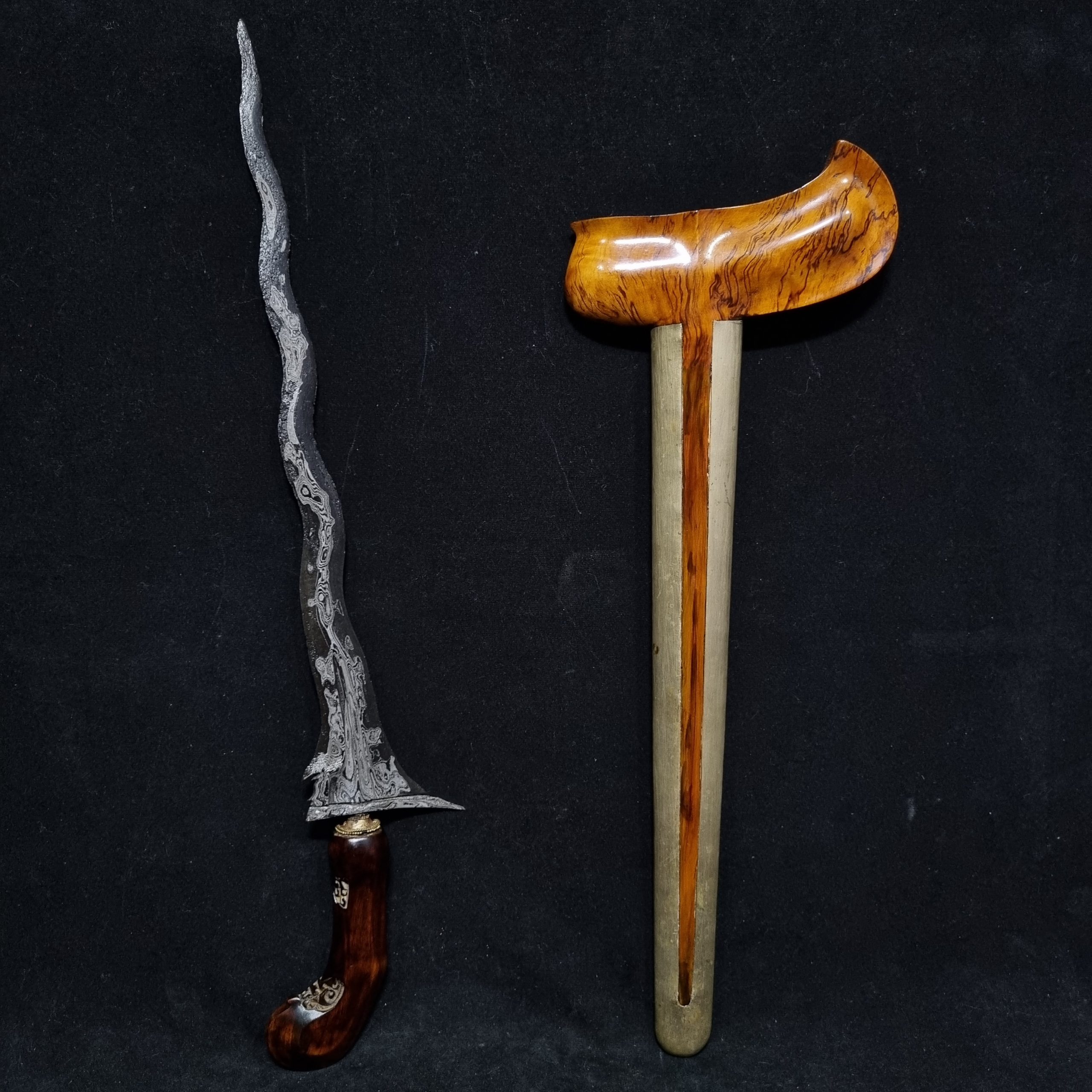 Kesesuaian antara keris dan sandangan warangkanya model Gayaman Surakarta dari kayu Timoho kuno memberikan sentuhan kesempurnaan pada keseluruhan tampilan. Kombinasi yang serasi antara benda seni ini menciptakan sebuah karya yang layak diagungkan dan dikoleksi.