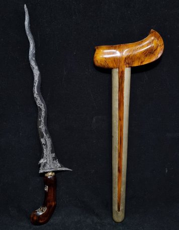 Keris Naga Raja Luk 13 Kinatah Kamarogan Keris Naga Raja Luk 13 Kinatah Kamarogan adalah sebuah maha karya seni yang luar biasa, mewakili kekayaan budaya dan keterampilan Empu Indonesia. Dengan ukiran dan tempaan yang menakjubkan, bentuk yang mengagumkan, dan makna simbolis yang mendalam, keris ini melampaui sekadar sebuah senjata dan menjadi perwujudan keajaiban seni tempa… selengkapnya