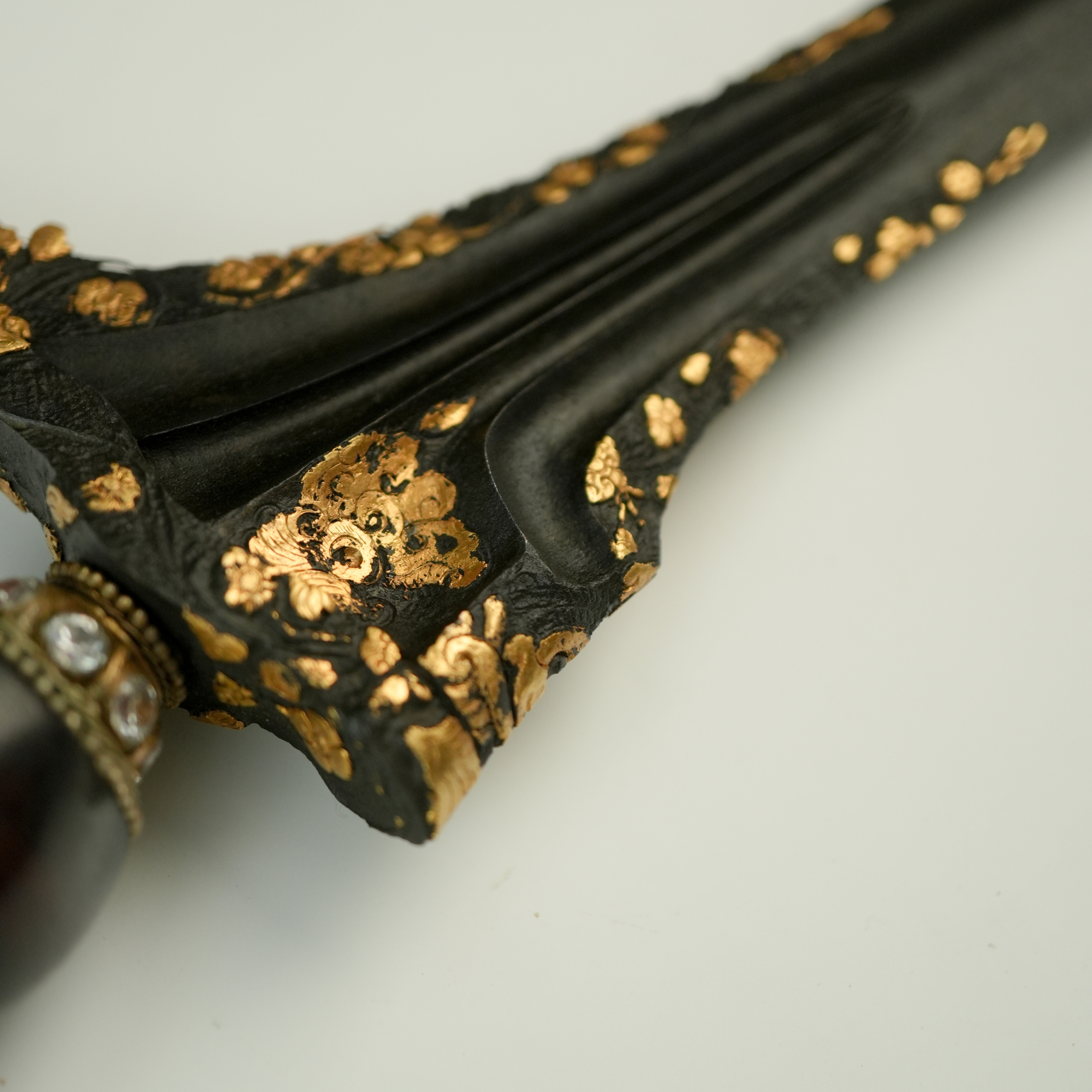 Rp 1.655.000Keris Kinatah Makoro HB V Keris Kinatah Makoro HB V salah satu koleksi pusaka istimewa dari era Hamengkubuwana ke-5. Keris ini berdhapur Tilam Upih dengan kinatah Makoro pada gandiknya. Makoro yang seperti kepala buto raksasa pada tahun 50-an sering dijumpai di dinding-dinding rumah orang-orang Jogjakarta. Makoro yang ditempelkan pada dinding rumah tersebut selain untuk penghias… selengkapnya