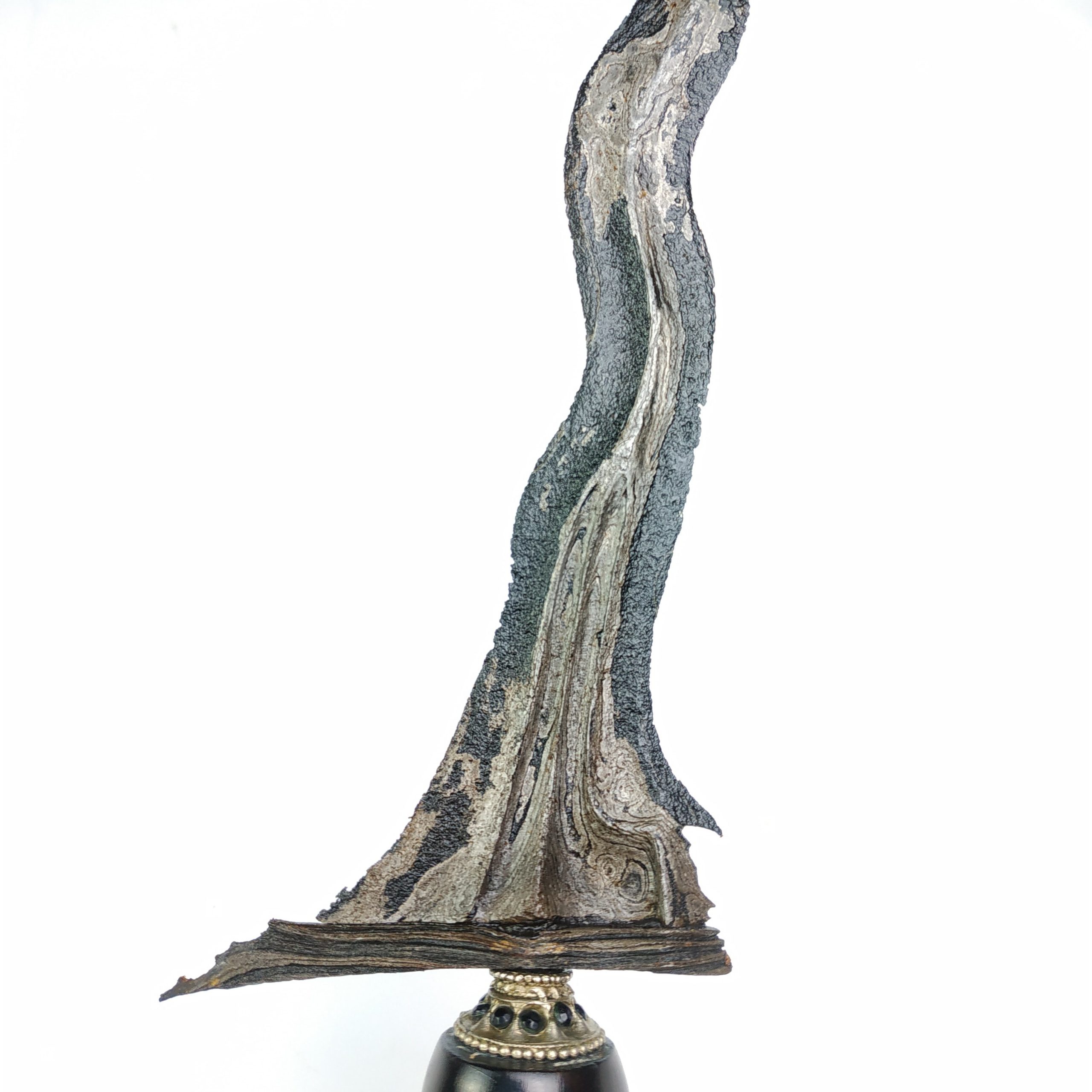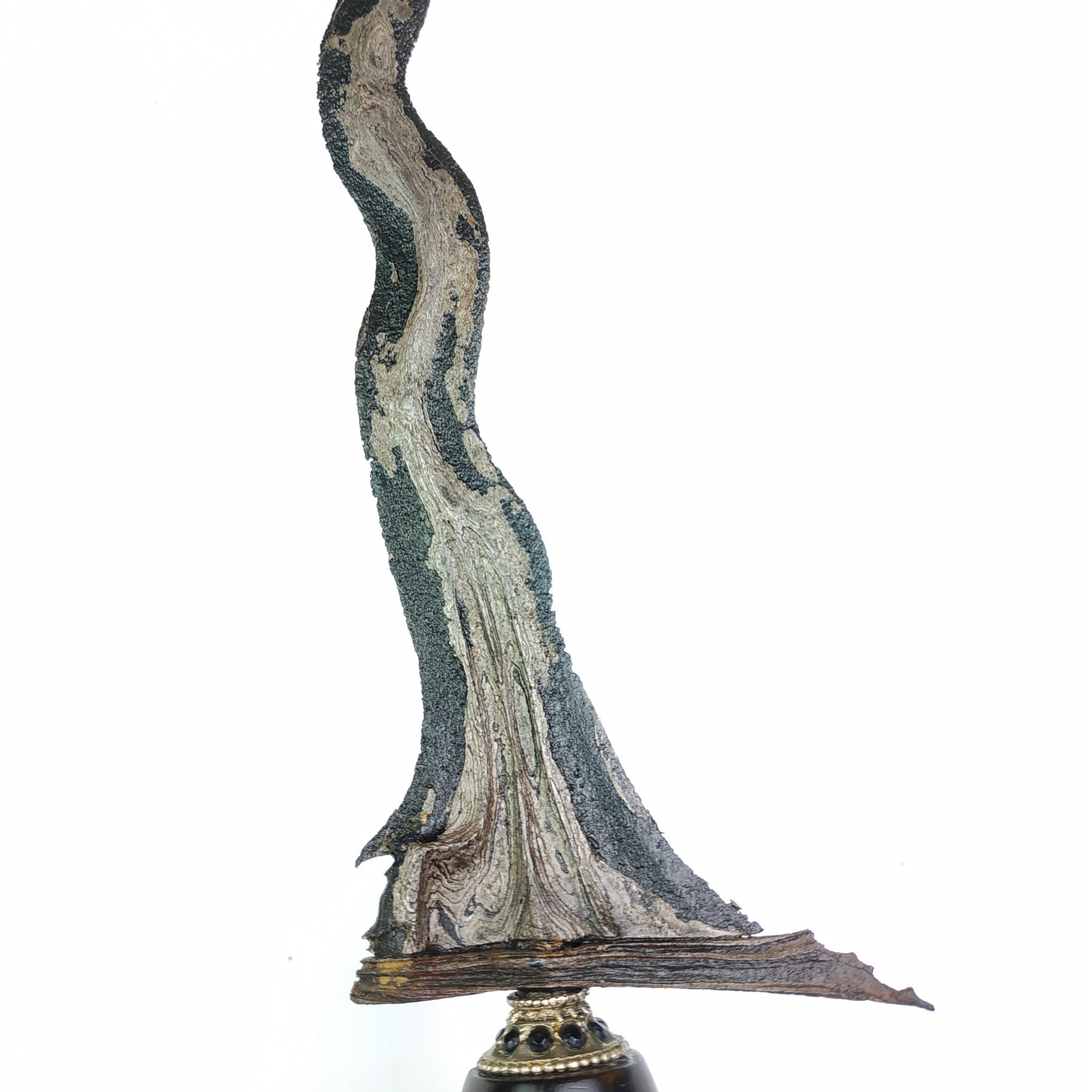 Rp 750.000Keris Pusaka Damar Murub Sepuh Kuno Langka Dhapur Keris (jenis bentuk keris) : Damar Murup Luk 5 Pamor (motif lipatan besi) :Ngulit Semangka Tangguh (perkiraan masa pembuatan) : Mataram Abad XVII Panjang Bilah : 33 cm Warangka : Gayaman Surakarta Kayu Timoho Kuno Handle / Gagang : Model Surakarta Kayu Kemuning Kuno Pendok : Blewah… selengkapnya