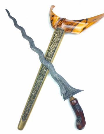 Rp 2.800.000Keris Pulanggeni Keleng Luk 5 Tuban Pajajaran Keris Pulanggeni Keleng Luk 5 Pajajaran adalah salah satu koleksi dari ratusan koleksi kami. Keris ini secara keseluruhan memiliki bentuk yang masih cukup utuh. Untuk pamor, keris ini berpamor Keleng atau tanpa pamor. Lalu untuk tangguhnya, keris ini diperkirakan tangguh Pajajaran. Memakai sandangan warangka model Ladrang Surakarta berbahan… selengkapnya