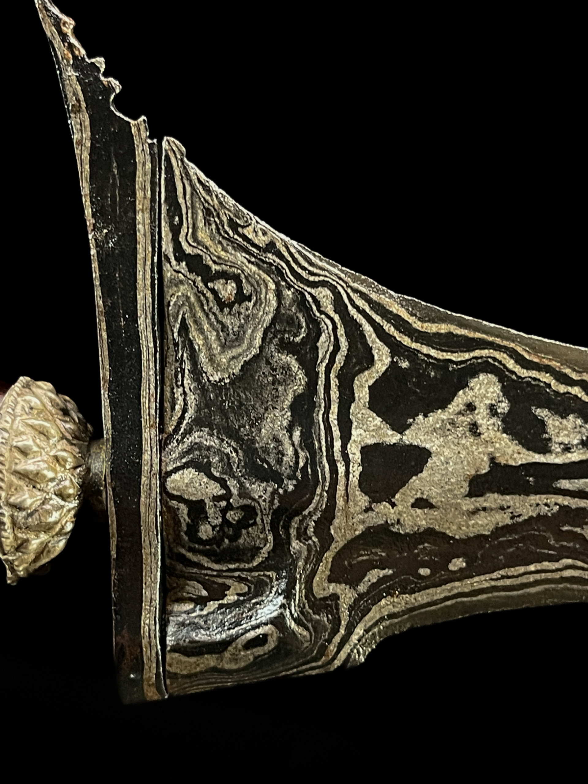 Hubungi AdminPusaka Keris Tindih Jalak Budho Temuan Dhapur Keris (jenis bentuk keris) : Jalak Budha Pamor (motif lipatan besi) : Meteorit Tangguh (perkiraan masa pembuatan) : Singosari Warangka : Sandang Walikat, Kayu Jati Handle / Gagang : Kayu Kemuning Bang Kuno Mendak : Perunggu Kuno Tentang Pusaka Keris Tindih Jalak Budho Temuan Ing ngulet dadi satunggal/… selengkapnya