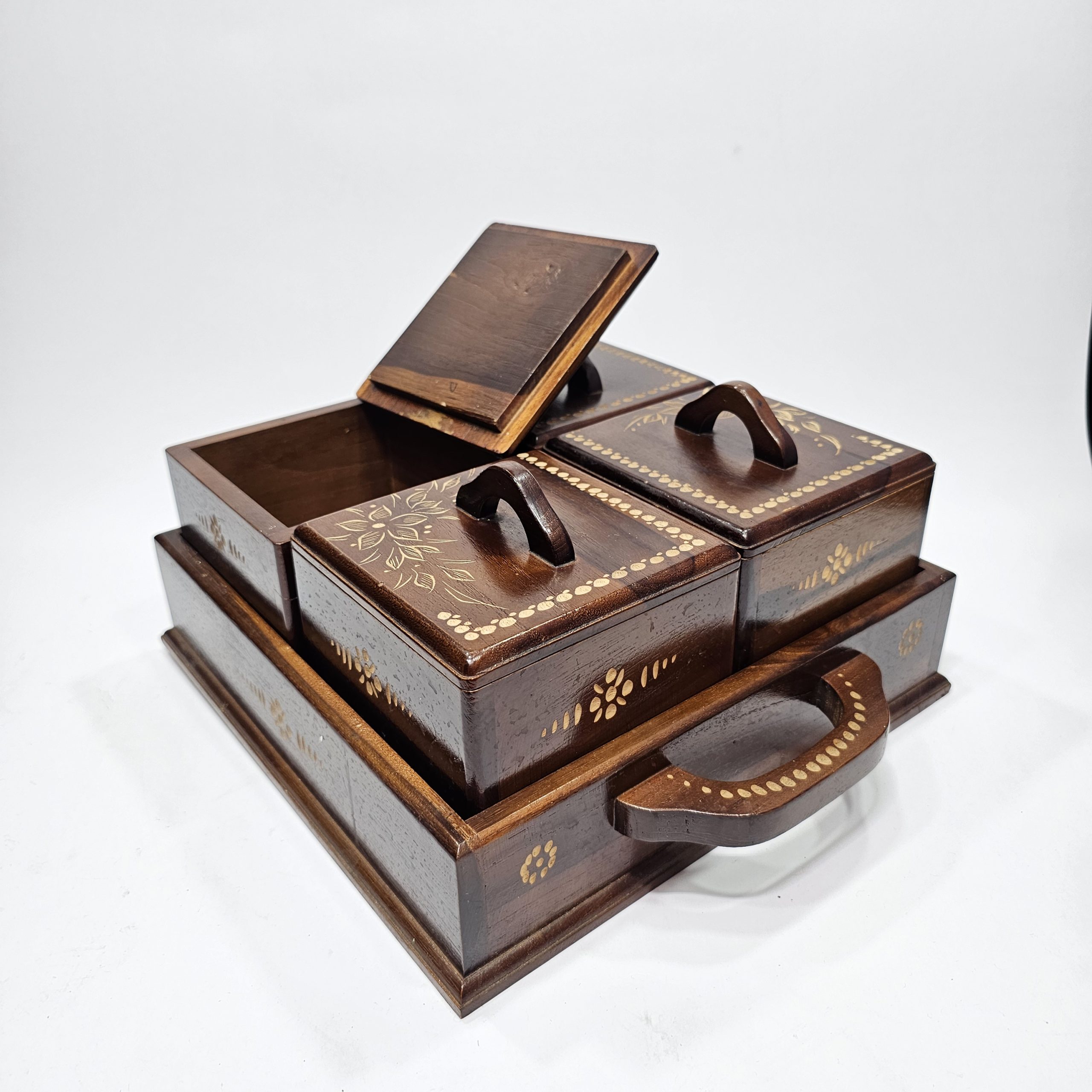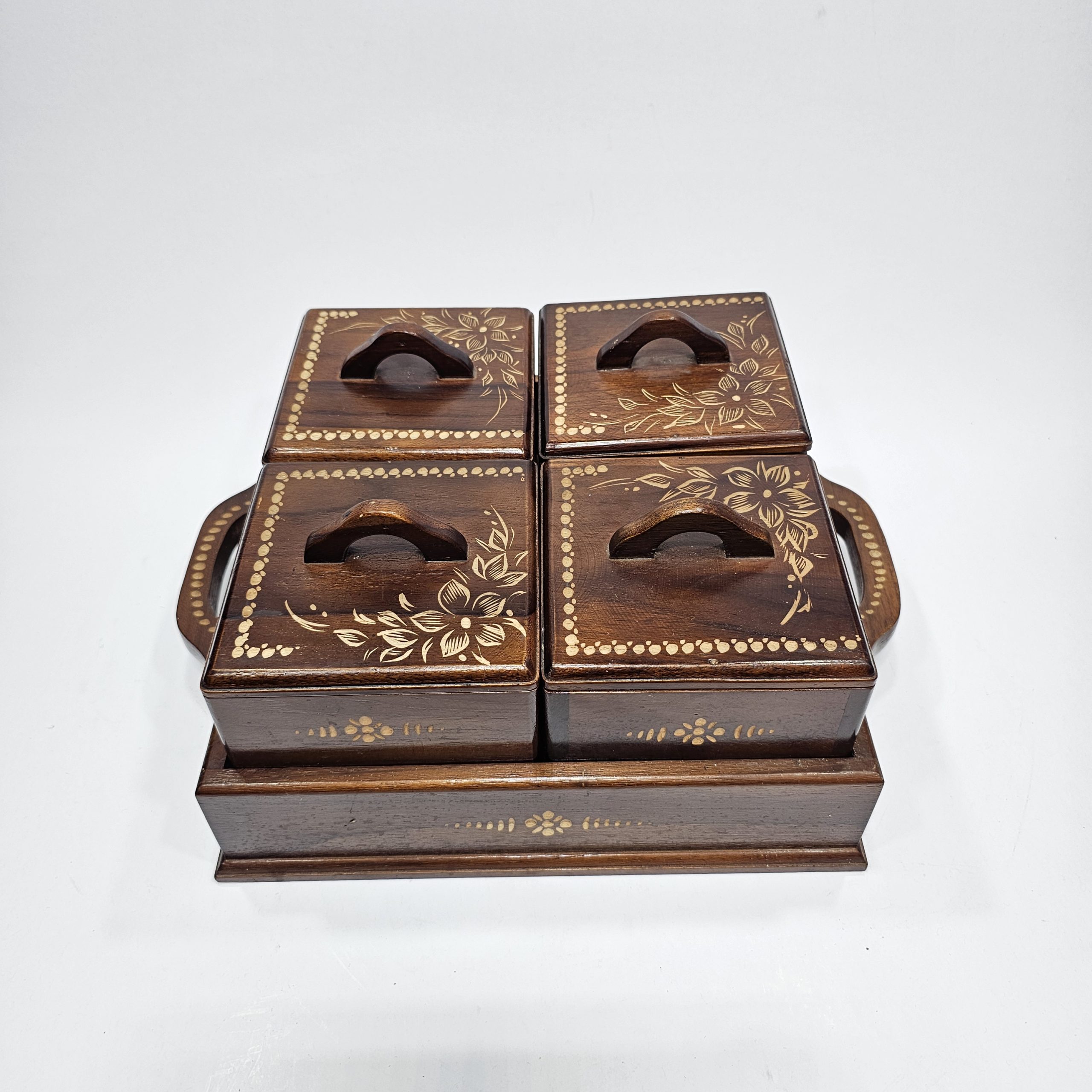 Desain kotak cemilan dari kayu jati menawarkan kombinasi sempurna antara kekhasan tradisional dan keanggunan modern. - Kepraktisan dalam Penyusunan: