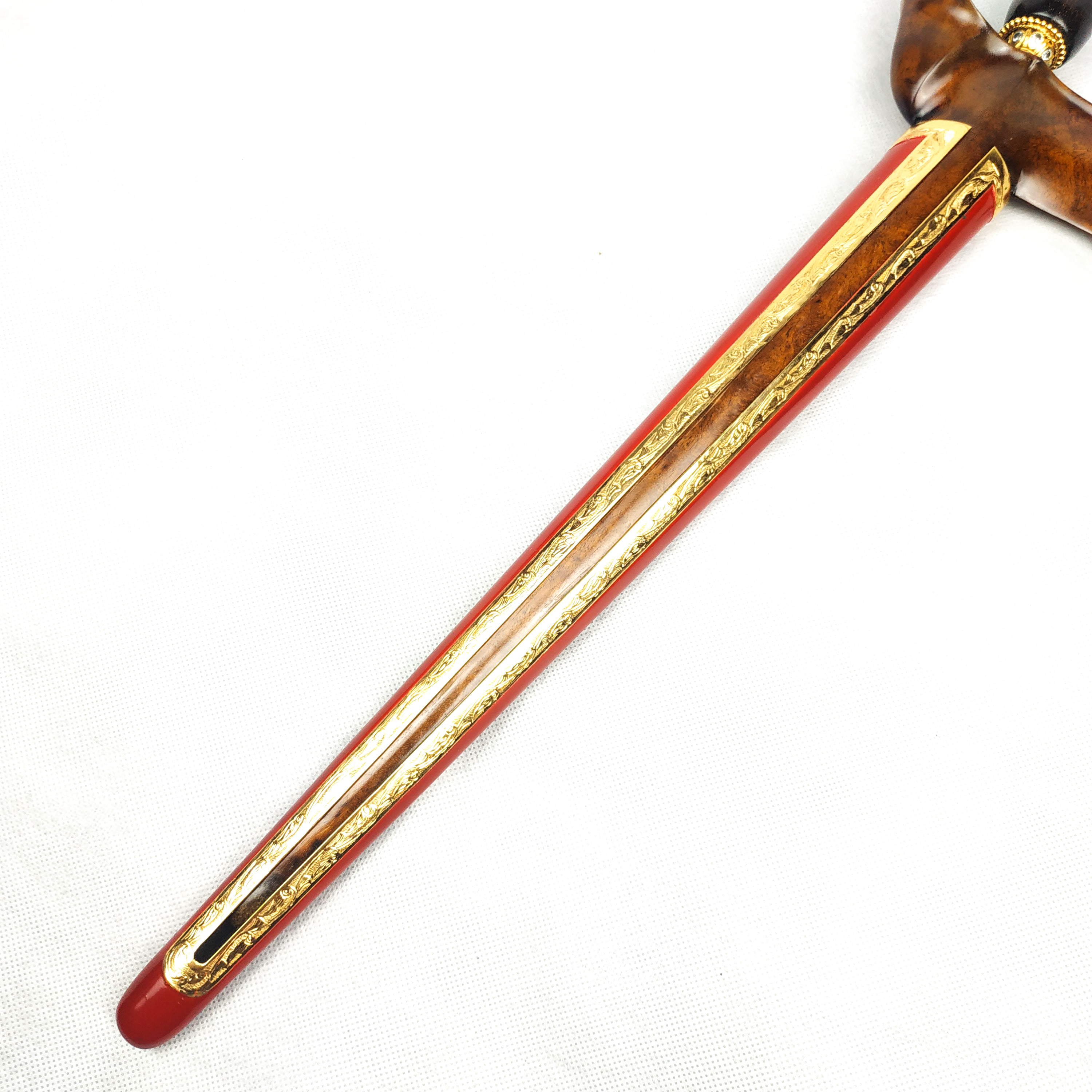Pendok yang satu ini adalah jenis pendok blewah kemalo merah gaya jogja dengan sepuhan emas istimewa. Tampilan pendok ini sangat elegant dan prasaja. Mampu menambah nilai estetika serta wibawa keris pusaka Anda. Cocok menjadi pelengkap sekaligus penghias pada keris koleksi pribadi Anda.