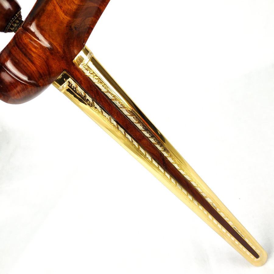 Pendok yang satu ini adalah jenis pendok blewah dengan sepuhan emas perak istimewa. Tampilan pendok ini sangat elegant dan merbawani. Mampu menambah nilai estetika serta wibawa keris pusaka Anda. Cocok menjadi pelengkap sekaligus penghias pada keris koleksi pribadi Anda.