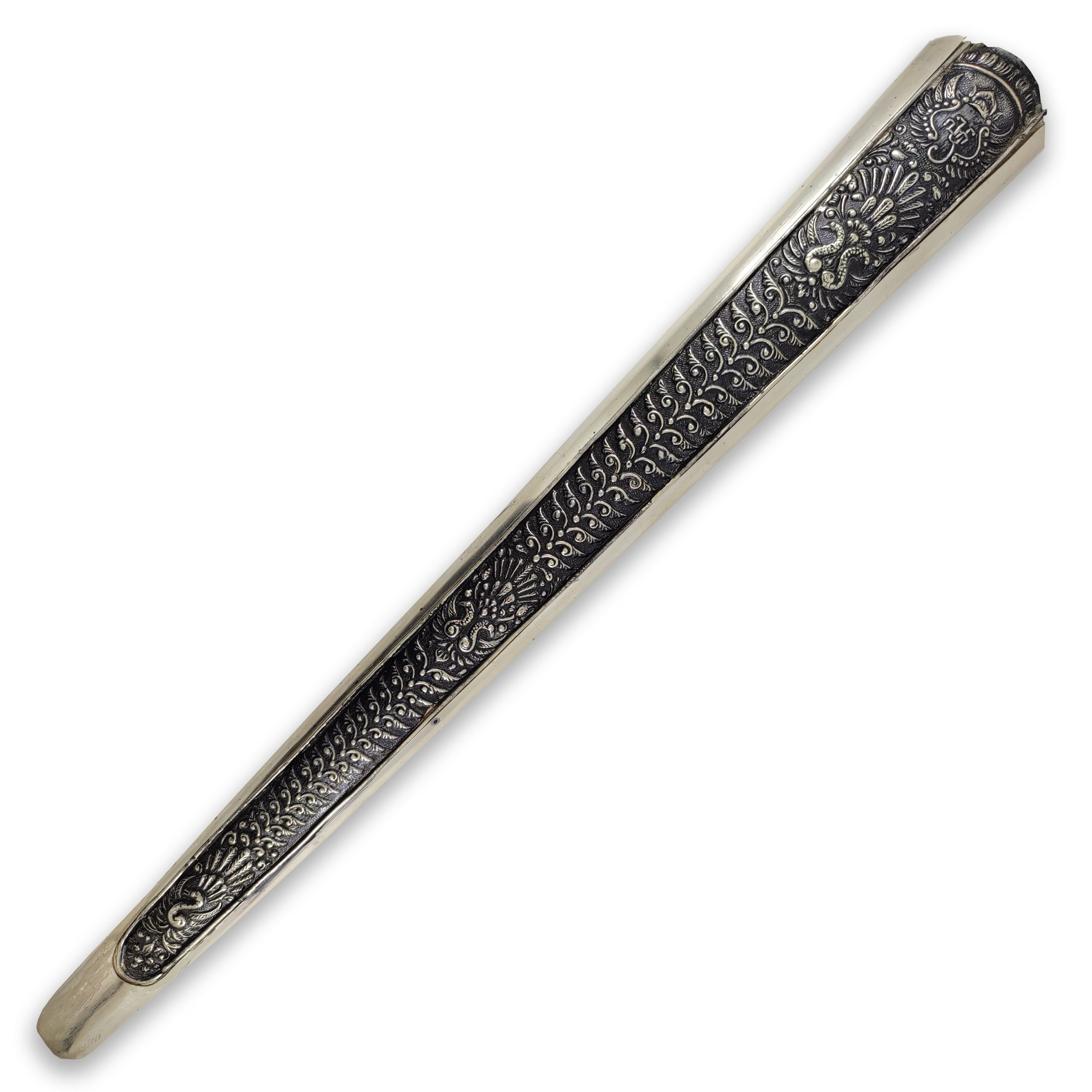 Lalu untuk kemalo berwarna perak yang membuat pendok ini nampak elegant dan lebih prasaja jika dipasang pada keris koleksi Anda.