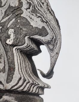 - Pamor (motif lipatan besi) : Keleng Hurap Berserat Besi Kehijauan
