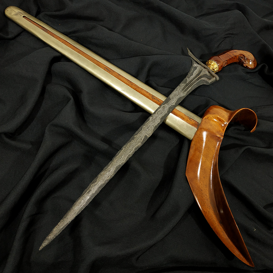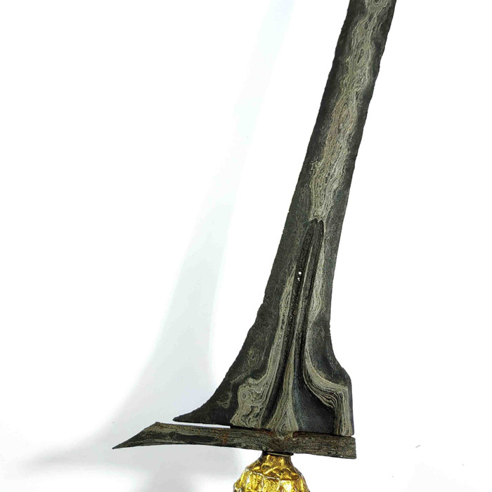 Keris Pamor Udan Mas Tiban Sepuh Dhapur Keris (jenis bentuk keris) : Tilam Upih Pamor (motif lipatan besi) : Udan Mas Tiban Tangguh (perkiraan masa pembuatan) : Pajajaran Panjang Bilah : 33,2 cm Warangka : Gayaman Surakarta Kayu Timoho Sembur Kuno Handle / Gagang : Kayu Kemuning Bang Kuno Pendok : Blewah Surakarta Mamas Kuno… selengkapnya