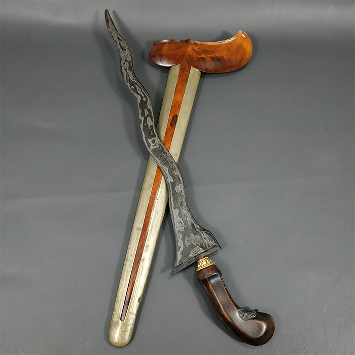 Rp 900.000Pusaka Keris Sengkelat Tangguh PB II Pusaka Keris Sengkelat Tangguh PB II memang sangat istimewa. Disamping dapurnya banyak diburu oleh para kolektor keris, tangguhnya pun juga cukup banyak dicari yaitu dari era Paku Buwono ke-2 ( PB II ). Jika dilihat dari keseluruhan bilah, keris ini masih cukup utuh dengan ricikan yang terlihat kembang kacang,… selengkapnya
