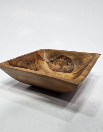 Kayu jati, dengan kekuatan dan keindahan alaminya, menjadi pilihan utama untuk tempat cemilan ini. - Desain Persegi yang Elegan: