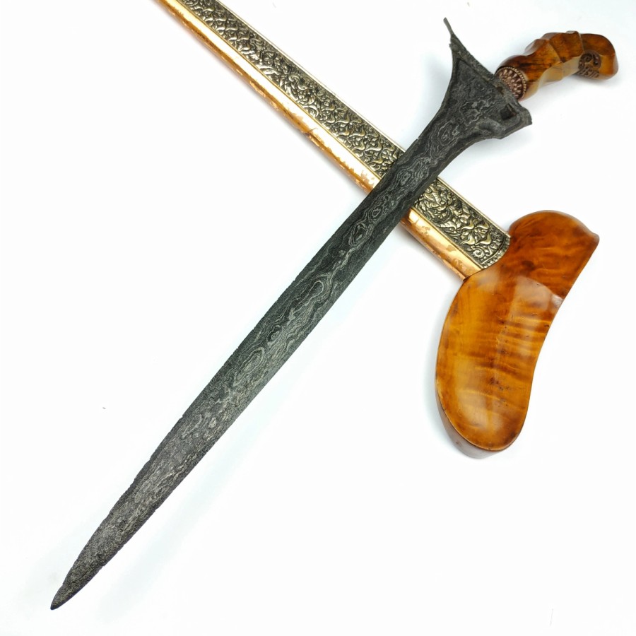 Rp 2.250.000Pusaka Keris Sempaner Pamor Pedaringan Kebak Dhapur Keris (jenis bentuk keris) : Sempaner Pamor (motif lipatan besi) : Pedaringan Kebak (pamor lembut khas keris hb) Tangguh (perkiraan masa pembuatan) : HB Sepuh Panjang Bilah : 33,7 cm pesi masih panjang Warangka : Kayu Timoho kuno model gayaman surakarta Handle / Gagang : Kayu kemuning bang… selengkapnya