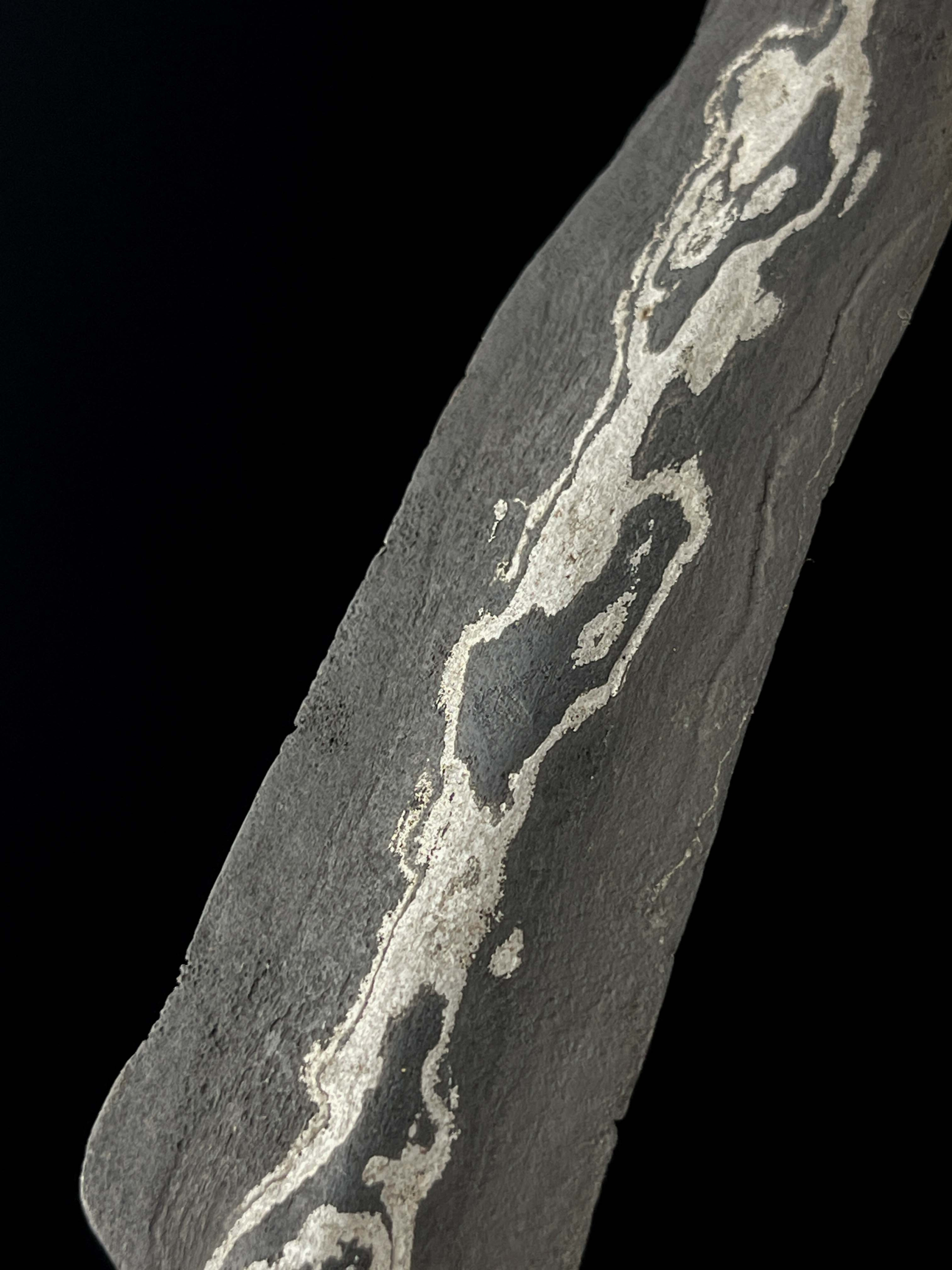 Tombak Karacan ini ditinjau dari garap dan roso bilahnya menunjukkan karakter kuat Tangguh Majapahit. Hal itu tampak dari tantingannya yang ringan dan seimbang, seolah bilah hidup dan mudah diajak menyatu dengan gerak. Besinya terasa padat, berisi, dengan kesan semu nglei—tidak mencolok namun memancarkan wibawa yang dalam. Garap luknya tergolong bregas dan sedang, tegas tanpa berlebihan, menghadirkan kesan luwes tetapi tetap wingit, seakan menyimpan daya batin yang tenang namun berpengaruh.