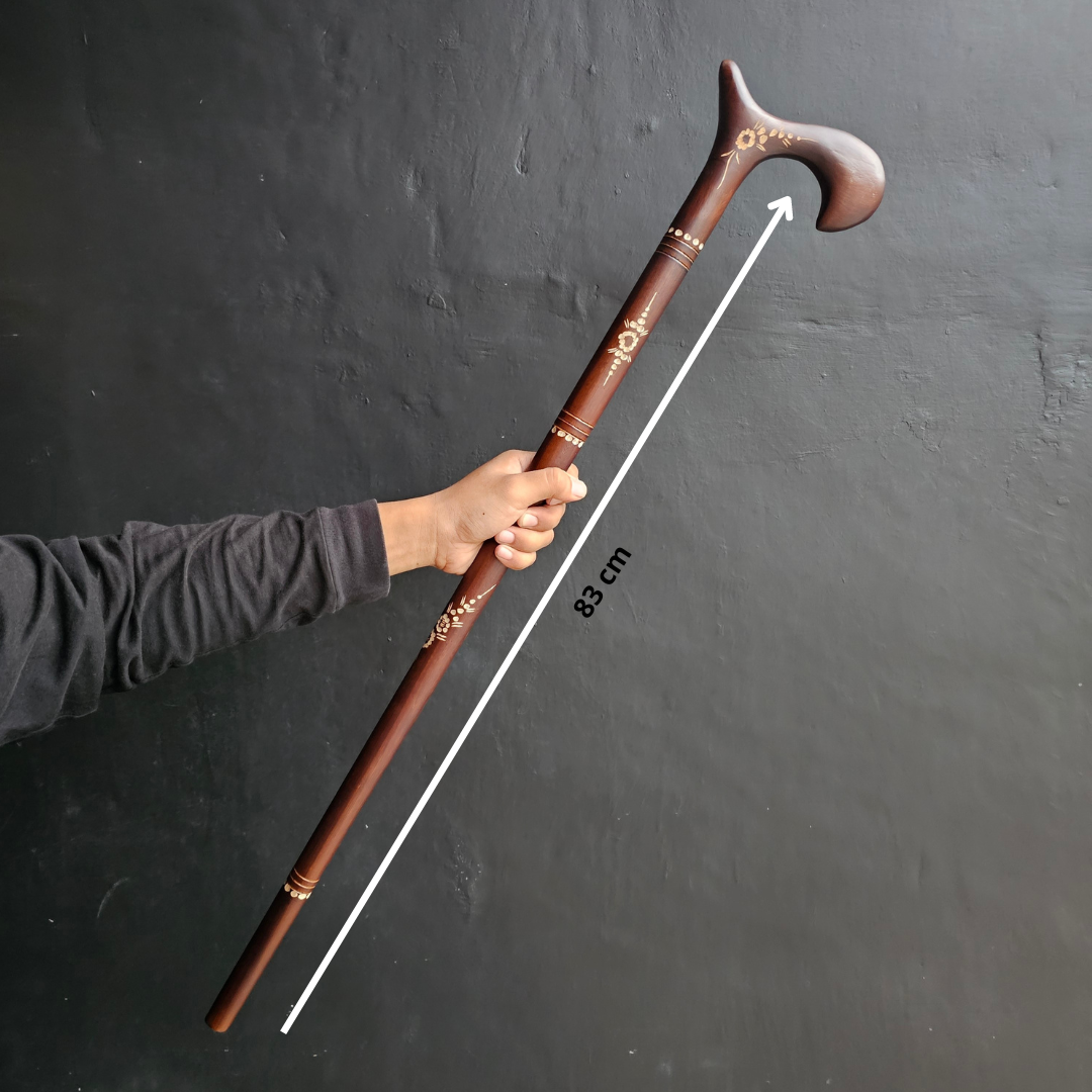 - Bahan Berkualitas Tinggi : Tongkat ini dibuat dari kayu jati, sejenis kayu yang terkenal karena kekuatannya dan tahan lama.