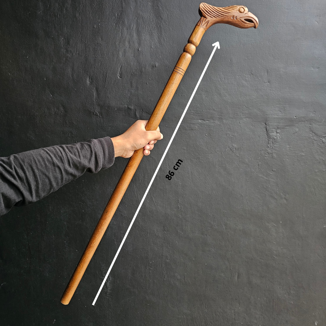 Tongkat kayu jati dengan motif ukir burung tidak hanya sekadar alat bantu berjalan, tetapi juga sebuah pernyataan seni yang memadukan keindahan alam dan fungsi praktis. Dibuat dari kayu jati yang kuat dan tahan lama, tongkat ini menjadi aksesori yang tak hanya memudahkan pergerakan, tetapi juga memperindah langkah pemiliknya.