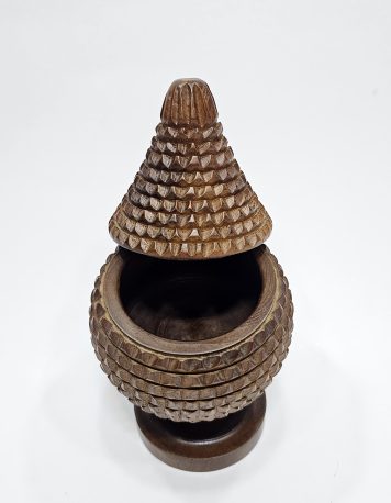 - Fungsionalitas Sebagai Wadah Penyimpanan: Toples kayu jati dengan motif buah salak tidak hanya menjadi dekorasi yang indah, tetapi juga berfungsi sebagai wadah penyimpanan yang praktis
